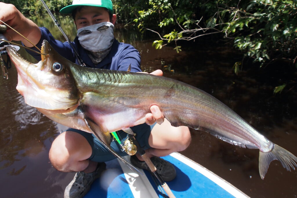 南米を象徴するピーコックバス(テメンシス種、IGFA世界記録13.19kg)もパワー的にはピッタリ。ビッグスイッシャーゲームにも、1日やり通すわけでなく「ここぞ」というタイミングでのみ投入するなら、飛距離が出てロングストローク(ハイアピール)で引ける「MRX-7」は、唯一無二の働きをする場面があるはず。実際、アマゾン初訪問時には7フィート半のロングロッドに助けられました。