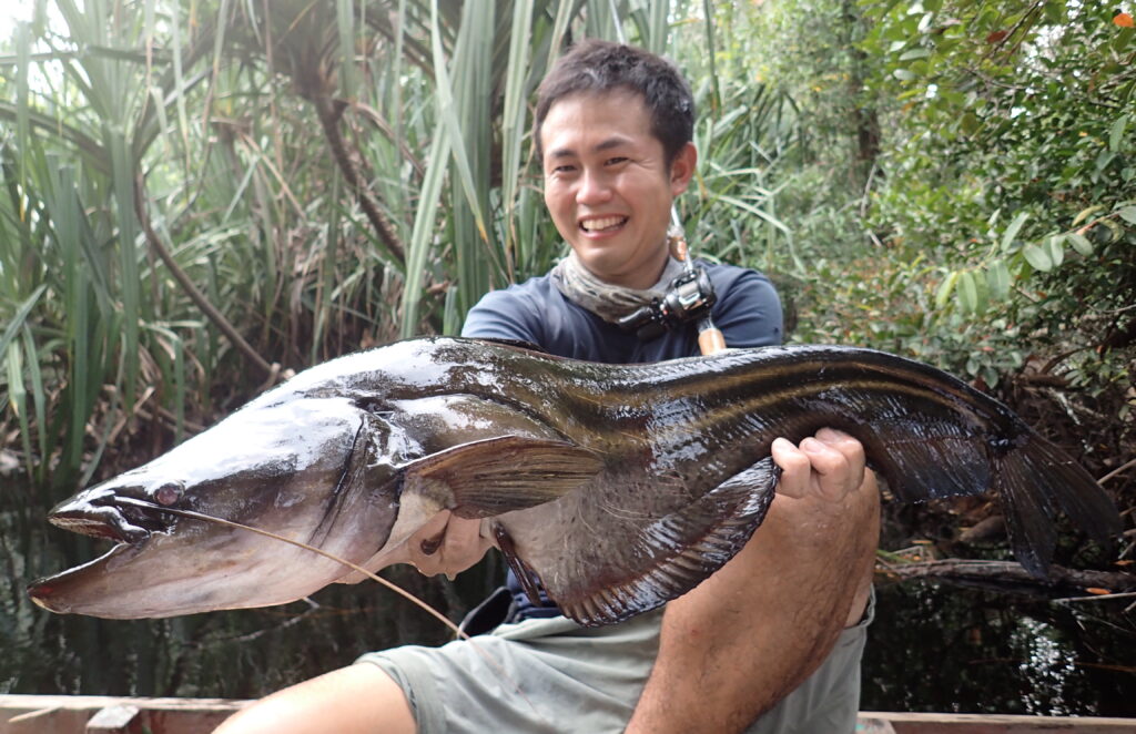 その他、アジアにはルアーで狙える密度でいる肉食魚に限っても、個人的には記録が実態と合っていない、記録が残されていない“怪魚”は数多挙がり、左下タパー(世界記録8.61kg)などはその筆頭。現地感覚で50kg程度までは珍しく無いので、「MRX-7」の好ターゲットとなるでしょう。薄っぺらですが、ビャウ/ツイステッドジョーシートフィッシュも簡単に1mを超える……個人的には、そんなアジアの大型ナマズの1種(未釣)をイメージして、「MRX-7」を作りました。