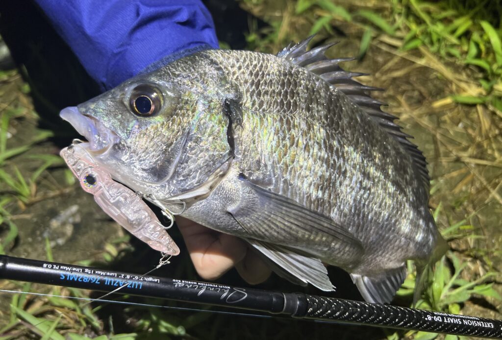 ルアーの浮遊感を活かしたスプリットショットリグで30オーバー複数、最大サイズは写真の39cmまで顔を出してくれました!