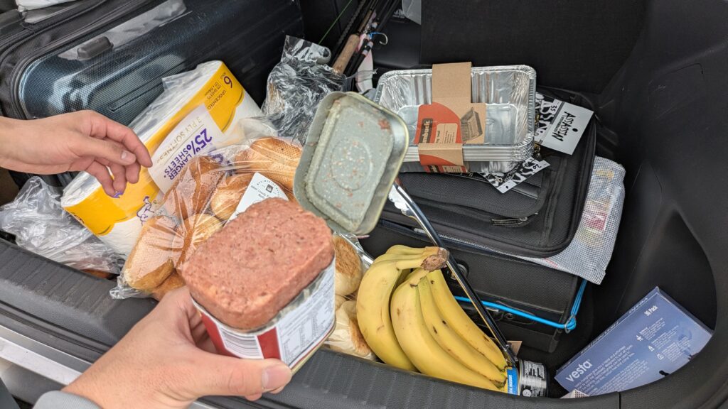 次にスーパーで大量に食料と水を買い込み、いよいよ出発です!