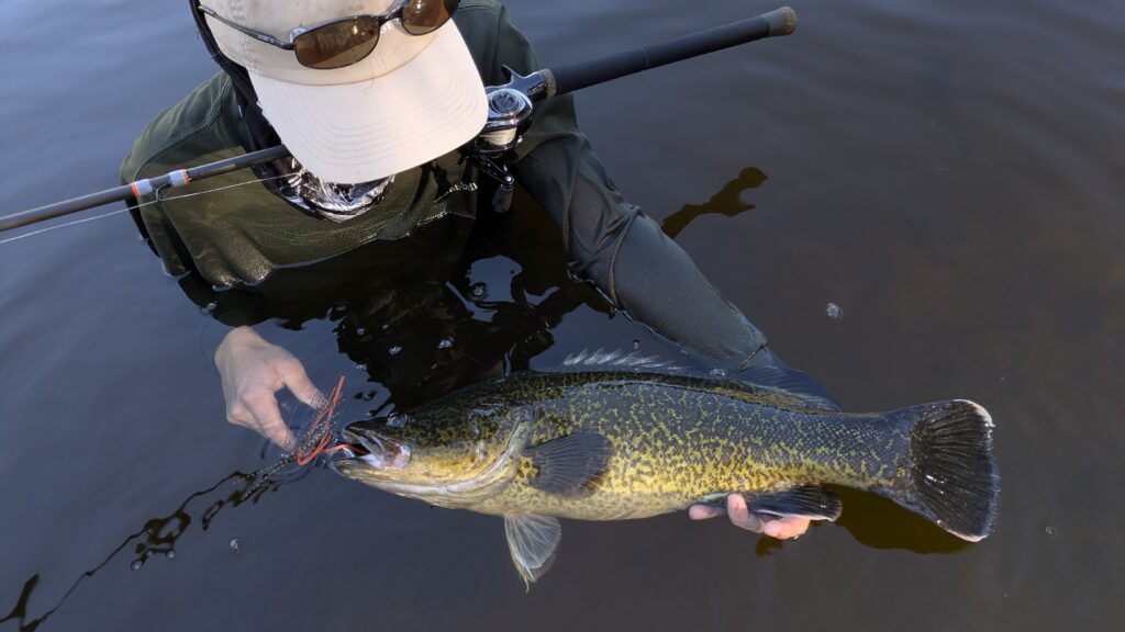 夕マズメになり、いよいよマーレーコッドの活性があがりそうな気配が。