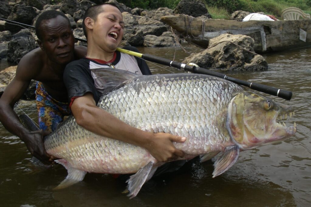 アフリカ大陸では、ナイルパーチとムベンガ(ゴライアスタイガー)の2巨頭。ナイルパーチに関しては2005年の初挑戦時には環境(まさかの帆船)的にも船からの釣りが厳しく、岸からのルアーキャスティングではせいぜい1m前後の若魚が精一杯。とりあえず現地人式に延縄で大型個体(156cm50kgクラス)を手にしましたが、いざその重厚感を前に「持参してきた竿では難しいな」と諦めました……2025年現在のナイルパーチのIGFA世界記録は104.32kg。ムベンガのIGFA世界記録は44kgです。ムベンガに関しては、写真はビキナーズラックによる最大級の142cm40kgクラスですが、信頼できる釣友(ピラルクー&グーンシュのIGFA世界記録保持者)から「確実に70kgを超える個体に切られた」という情報も聞いています。