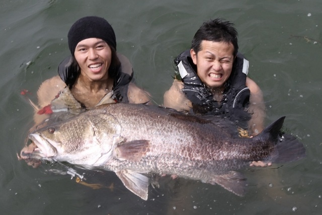 他に挙げるとすれば、パプアニューギニアでの特大パプアンバス狙いに際して、18cmのフローティングミノーを襲った(口に掛かっていた)162cmのノコギリエイは、海では500kgを超えた記録も聞かれます。若魚の間は淡水域で暮らし、現地ローカルの話では3m前後までの個体が網にかかったのを見たことがあるそうです。その他、自身は延縄で1.2m程度までしか手にしたことはありませんが、現地で「イートングーシーダダ」と呼ばれていたハマギギ科の未記載種も、村人から「2mを超える」と聞いています。