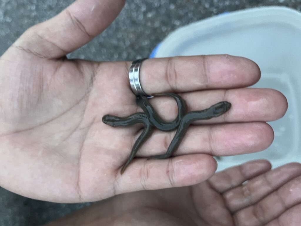 川合テスターらと船に乗る予定でしたが、あいにくの海況により釣りはできず……どうしても富山でやりたかった“あぶらぎっちょ”(ミミズハゼ)を捕まえたり、