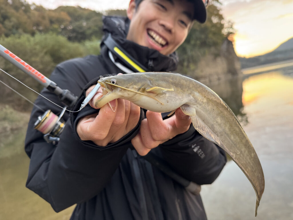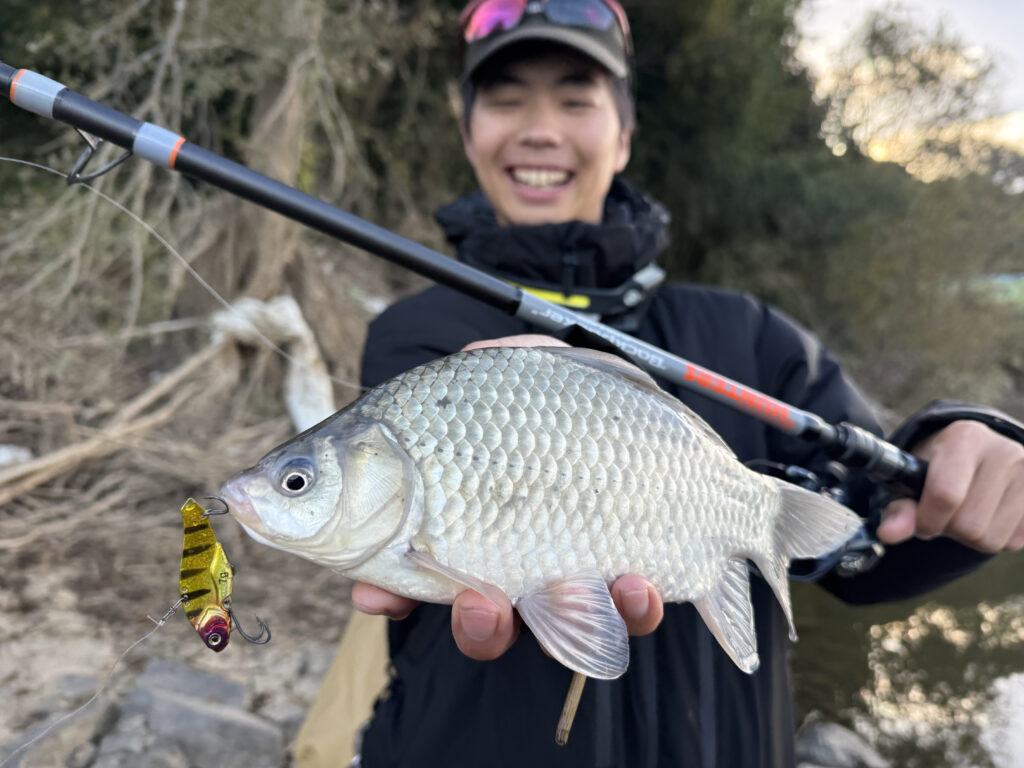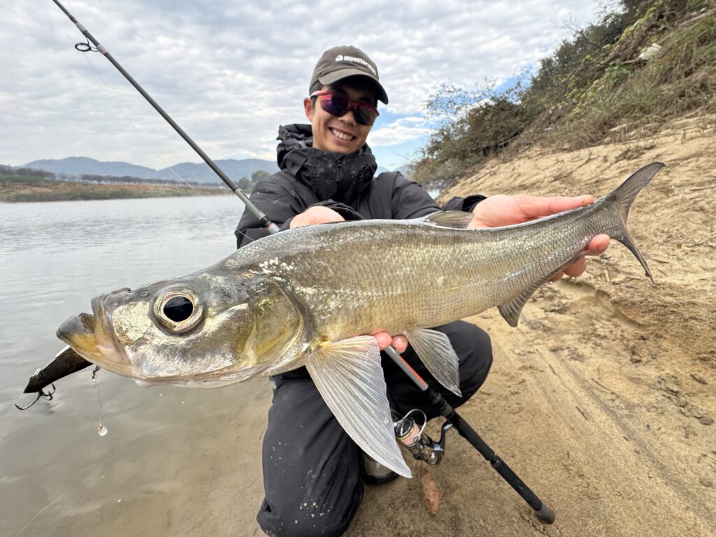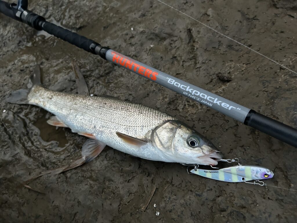 このモード7では、河川オープンエリアでメタルバイブを遠投し、大型のソガリもキャッチしました!