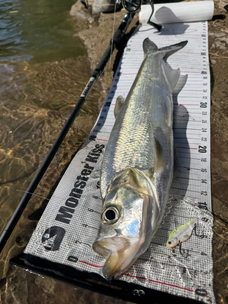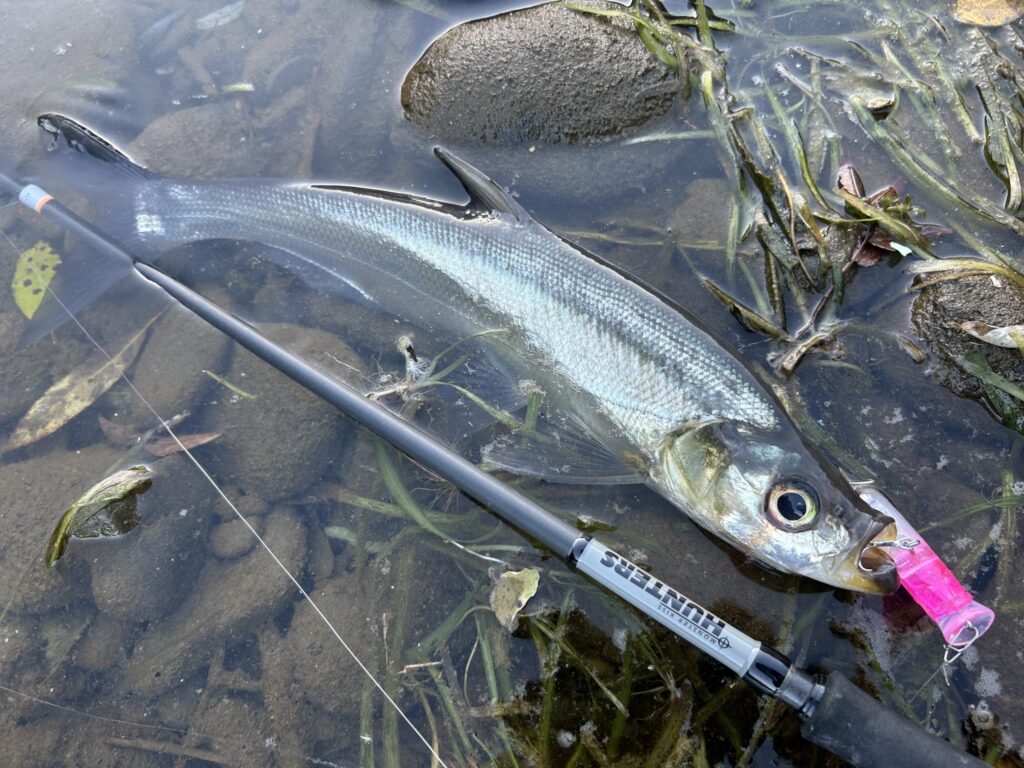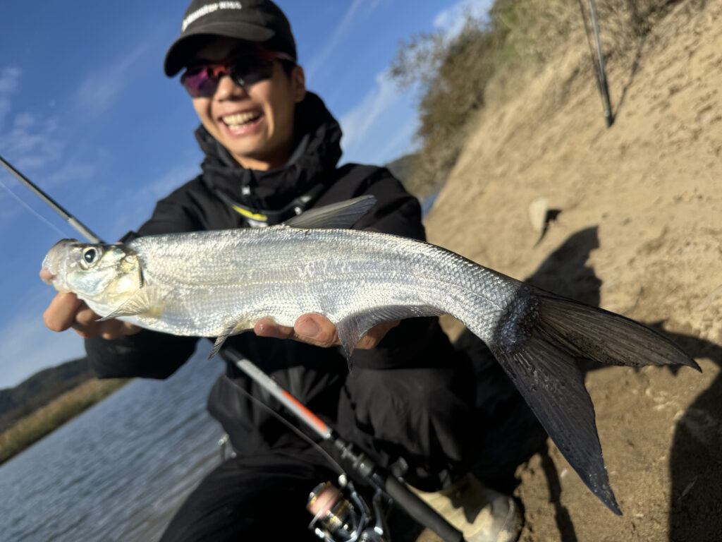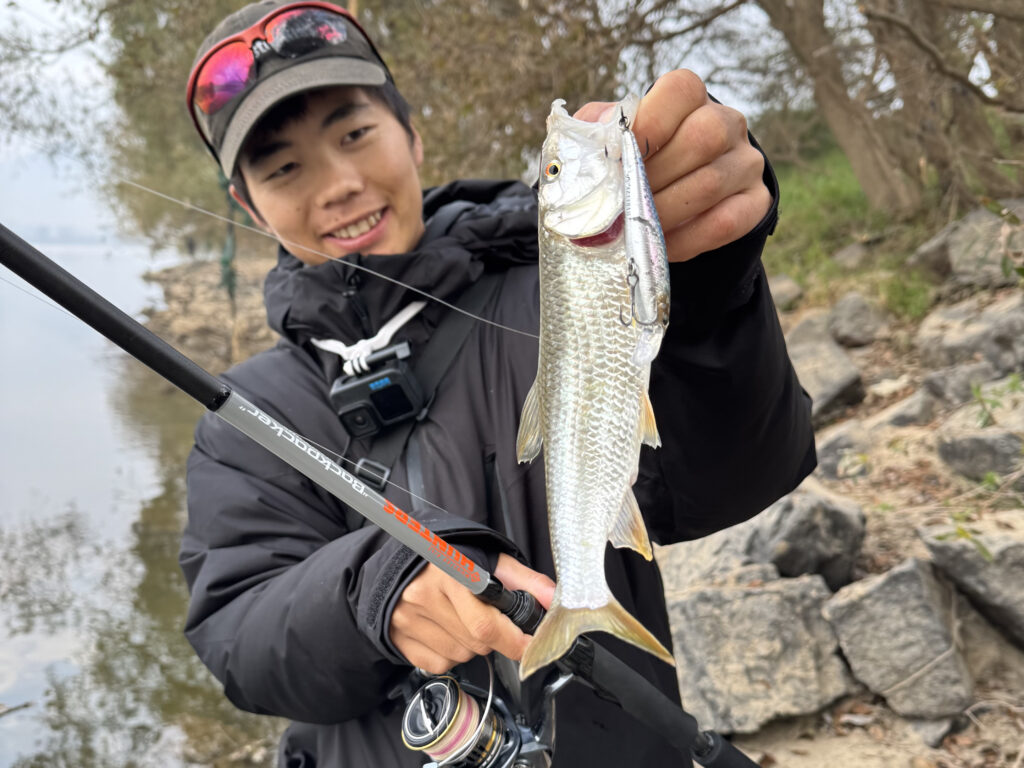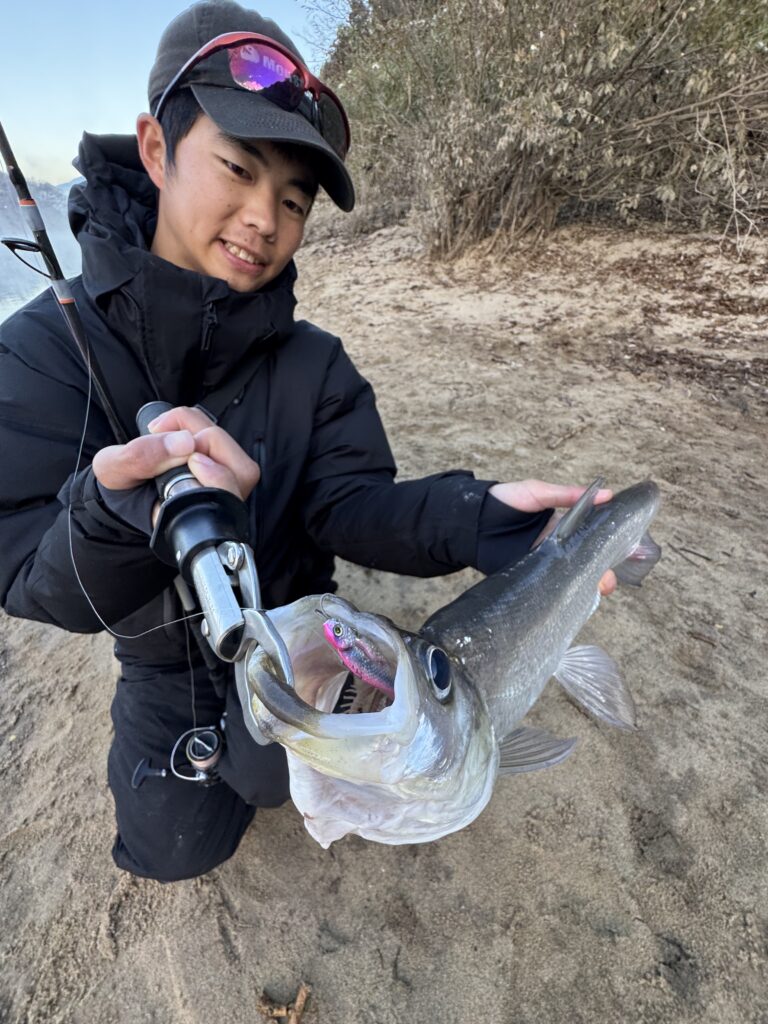 このモード7では、河川オープンエリアでメタルバイブを遠投し、大型のソガリもキャッチしました!