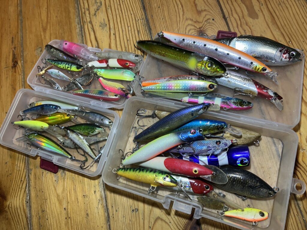 大から小まで様々、こんなルアーを投げるイメージで出発。