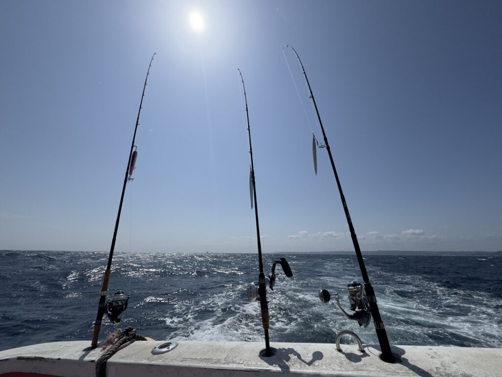 ジギング用に当時テスト中だった「MX-6SW」(スピニング)と「MX-6+」(ベイト)と、以上3セットを用意しました。