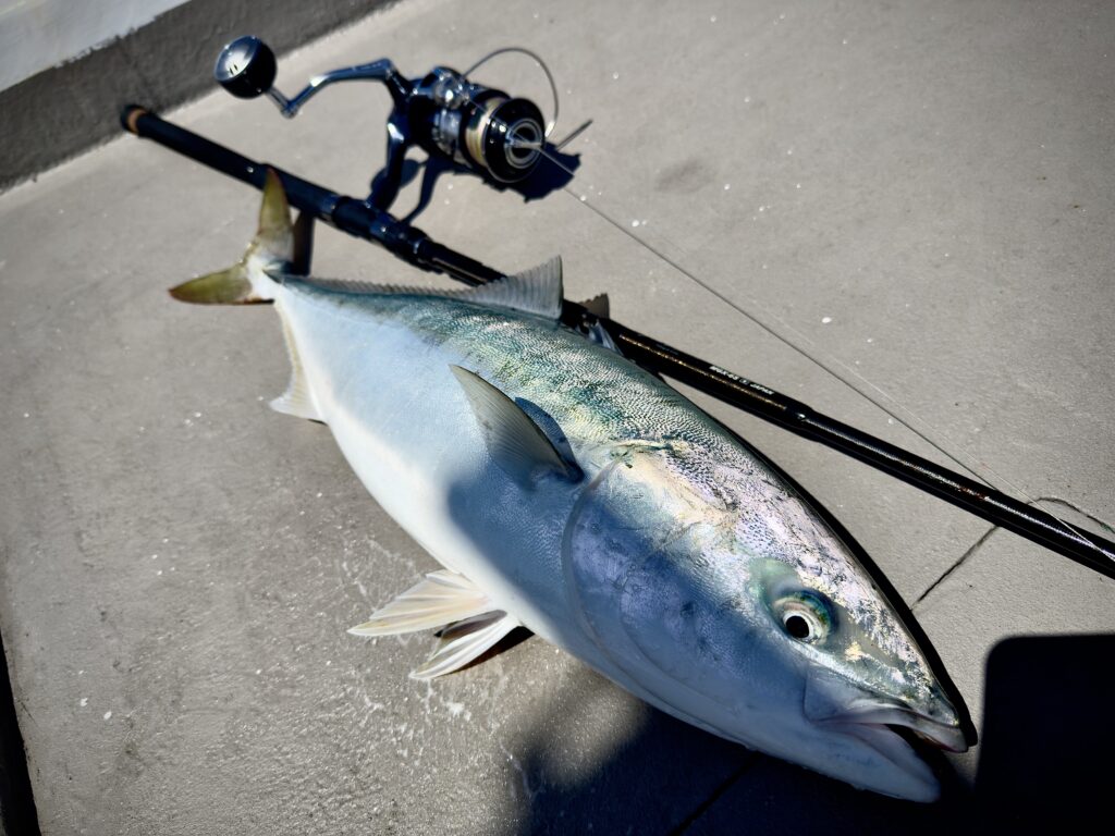 「MX-9S」は長さが8’6″ftと少し長めなので、胴の間等スペースが狭い場所ではキャストに気を使いましたが、一方ミヨシに立った際には波立つ水面でも足元までルアーを引いてこれるメリットも大きく感じました。