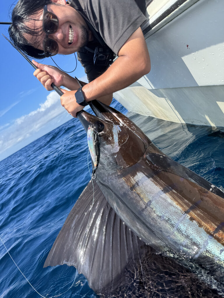 実際、この春キャスティングでキャッチしたヒラマサはミヨシの船縁から5mの回収間際でのヒット、サイズ7.5kgとやや小ぶりだったのでロッドパワー的にも危なげなくファイト·キャッチする事ができました。