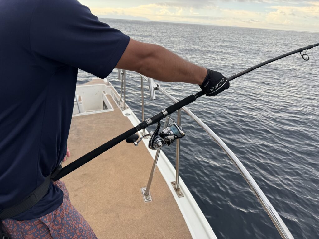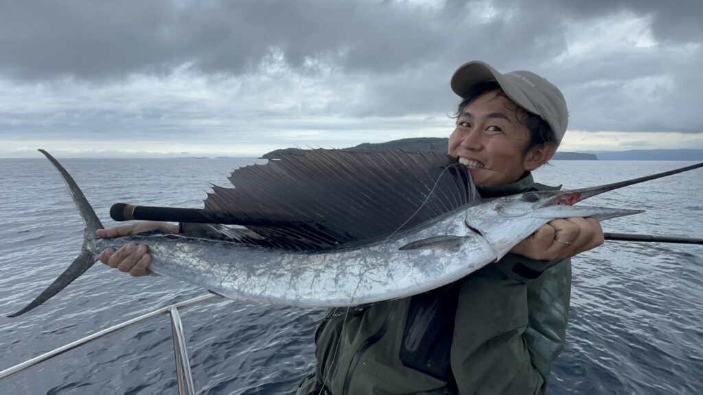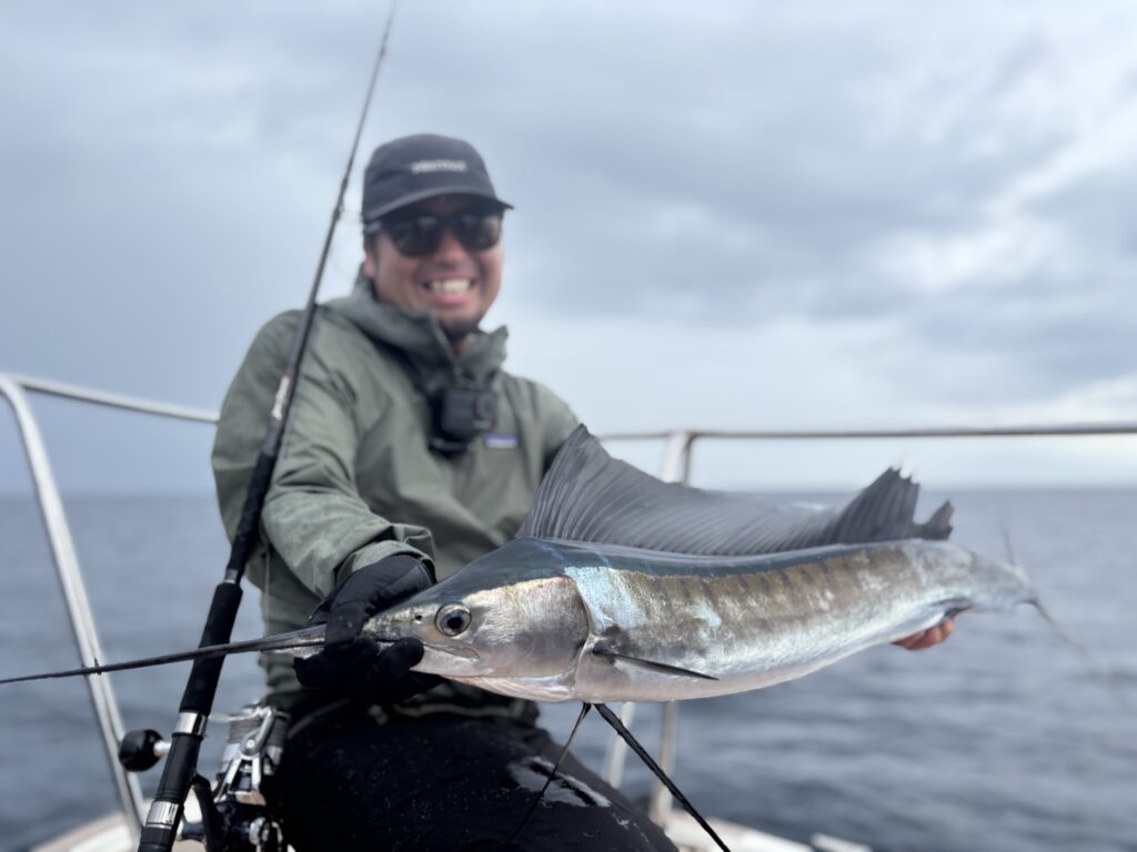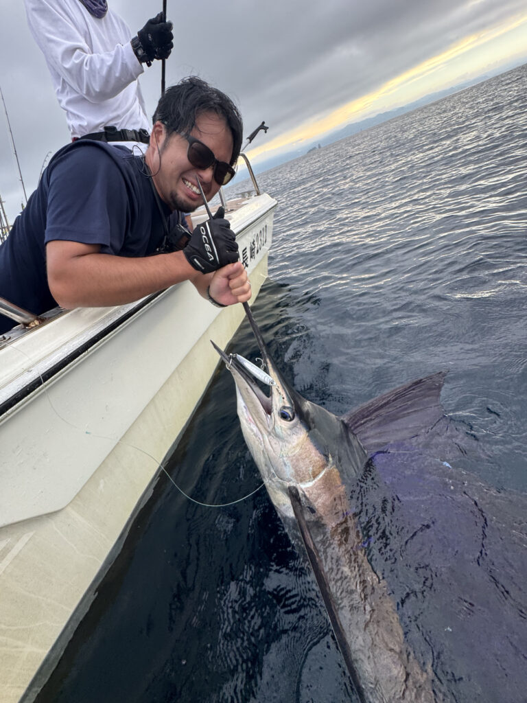 「“バショウカジキ専用ロッド”なんて、言っちゃってみる?笑」と小塚さんが冗談めかしてたくらい、ルアーのサイズ感・魚のサイズ感・強さ等、全てにおいて「MX–8SW」は芭蕉カジキに適切な使用感でした。