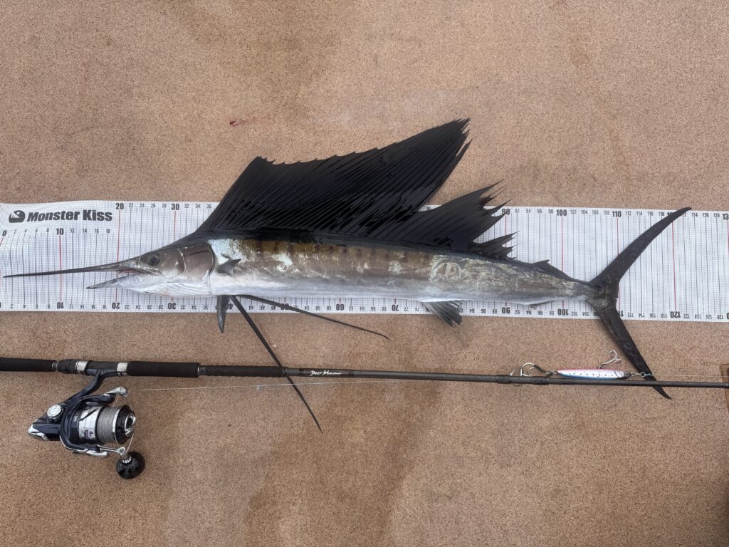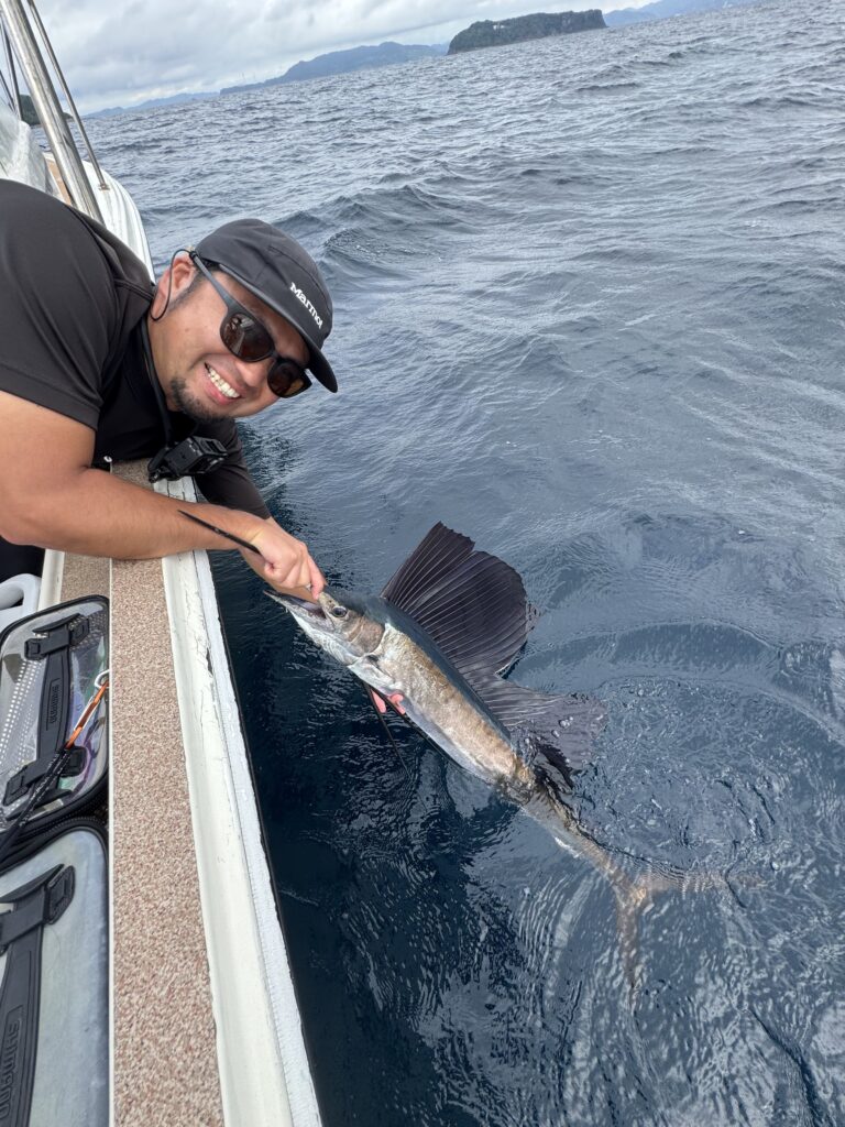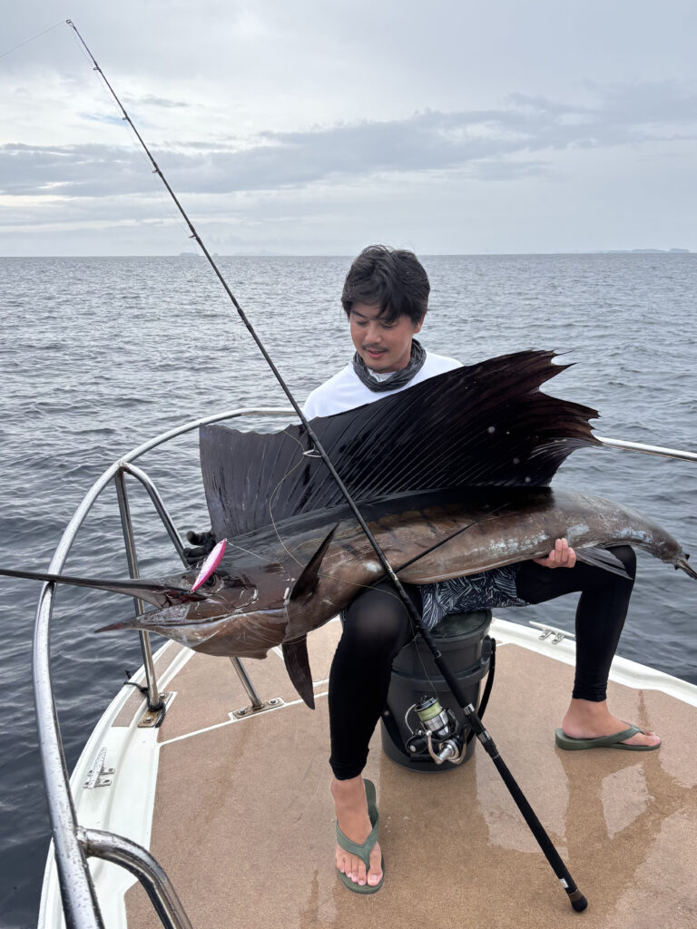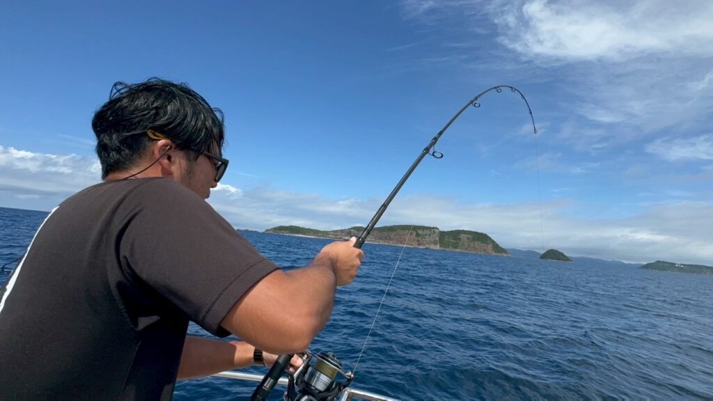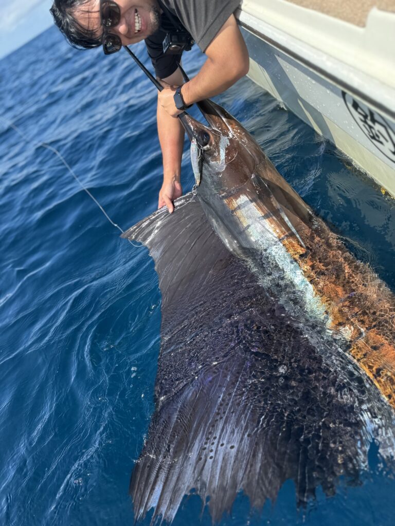 「“バショウカジキ専用ロッド”なんて、言っちゃってみる?笑」と小塚さんが冗談めかしてたくらい、ルアーのサイズ感・魚のサイズ感・強さ等、全てにおいて「MX–8SW」は芭蕉カジキに適切な使用感でした。