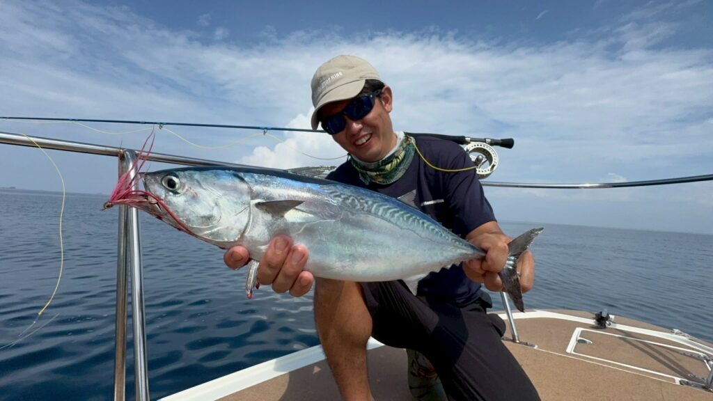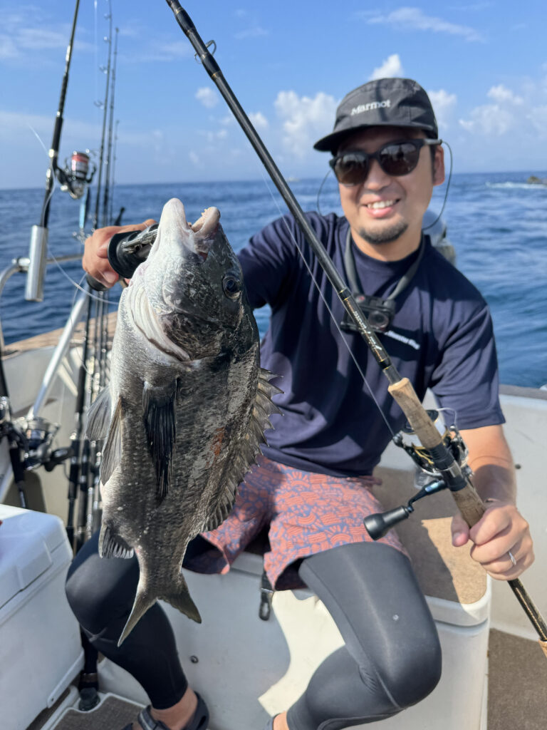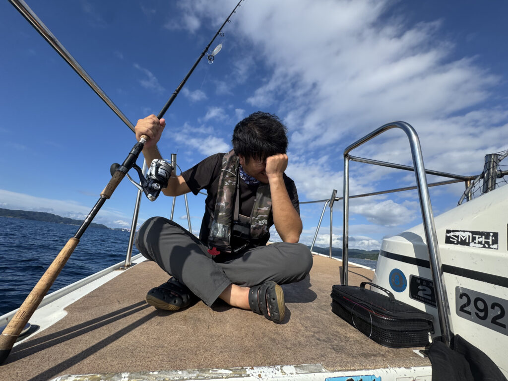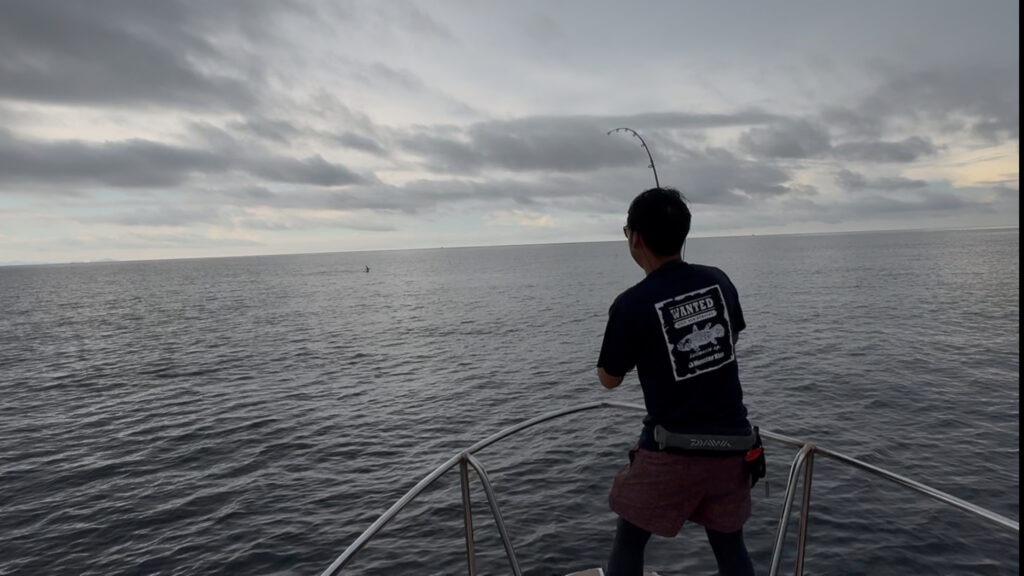そんな中、この日は船長横でカメラマンに徹していた吉田さんがデッキの2名(津田&田山)のライントラブル中に「ちょっと投げるね~」と投げて、サクッとヒット。