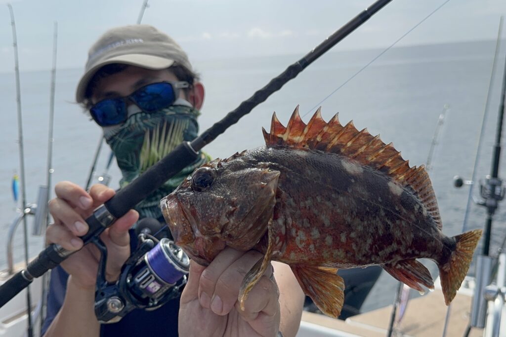 出船から数時間、二日酔いでスロースタートの小塚さんが、難なくキャッチ。