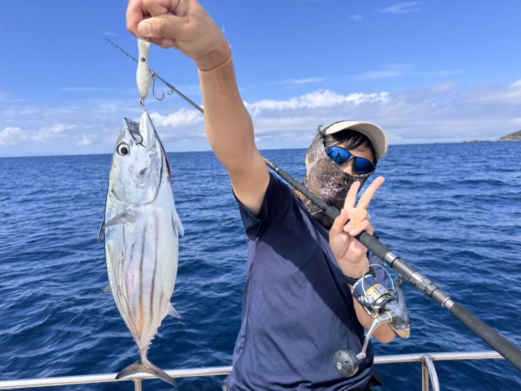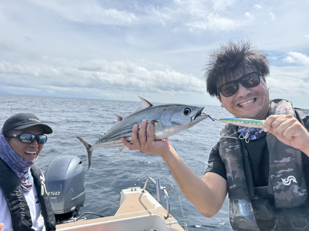 その後、サメつきナブラに遭遇、明日が本番だと思っていた芭蕉のヒレも見えて船中のテンションも沸騰!